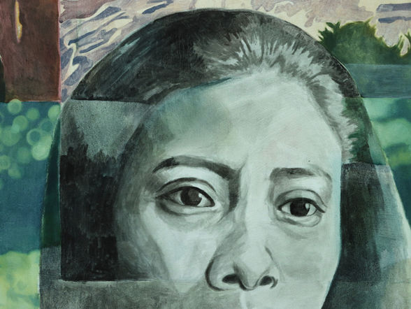 These three large-scale paintings explore our understanding of emotion through cinematic imagery. Their compositions were arrived at through the montaging of film stills depicting corresponding atmospheres, aiming to highlight how repetition has cultivated iconography and understanding of subjective emotion. Selected stills originate from international films and backgrounds, representing both the past and present. This is important to the works as they reject homogenous representations due to the nature of emotion to transcend boundaries of culture, age, gender and era. Repetition of visual language when depicting emotive scenes in film is microcosm to broader cultural phenomenon of shared experiences. The universality of emotion allows the viewer to form a sense of personal identity with the figures in the paintings, with the subjectivity supporting the artists interest in the relationship between artwork and viewer. Playing on the collaged formation of composition, the visual language of her paintings aims to epitomise the overwhelming multiplicity of everyday life, the montage method of composition a homage to film itself. Light plays an important role as through building up thin layers of colour a greater sense of atmosphere is achieved, and it is this subsequent transcendence which brings a sense of beauty to otherwise melancholic scenes. These works form the series for the artist's degree show.